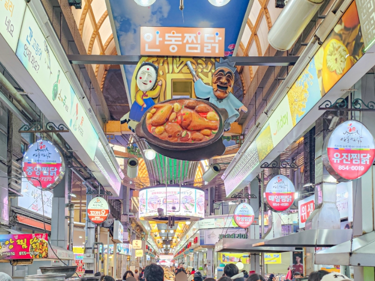 안동 구시장에 위치한 찜닭 골목에는 수많은 찜닭 맛집이 모여 있어요.