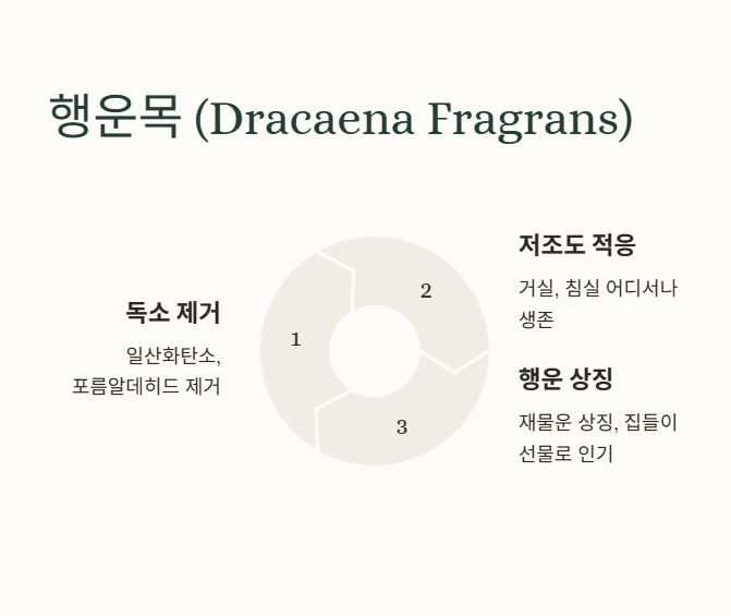 행운목은 실내에서 키우기 좋은 대표적인 공기 정화 식물이에요!