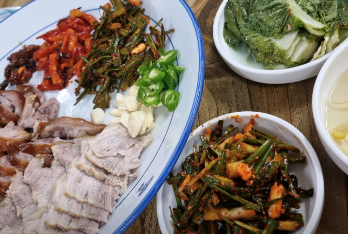 쫀득한 앞다리 족발과 매콤한 파김치의 환상 콜라보! 밥도 술도 부르는 로컬 찐맛집입니다.
