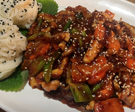 고추, 문어 다리, 몸통까지 수북하게 담겨 나오고, 국물은 따로 제공돼 더 깔끔하게 즐길 수 있어요.