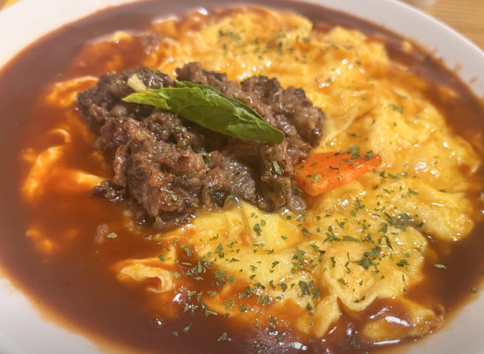 짜장 소스가 건강하면서도 감칠맛이 은은하게 퍼지고, 계란 튀김이 자극을 보완해줍니다.